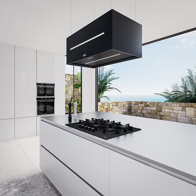 - Мощный отвод до 1100 м3/ч при энергопотреблении 250 Вт обеспечивает быстрое удаление паров и запахов с кухни.