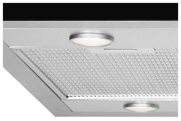 Освещение рабочей зоны реализовано четырьмя светодиодными лампами мощностью 1,2 Вт каждая, равномерно подсвечивающими поверхность плиты. Жиропоглощающие кассеты выполнены из металла и пригодны для мытья в посудомоечной машине; их в комплекте три, предусмотрен индикатор загрязнения, сигнализирующий о необходимости очистки. Устройство поддерживает режимы отвода и рециркуляции, при желании можно установить угольный фильтр (в комплект не входит) типоразмера Tipo 2 круглый _212 мм; совместимость с набором Kuppersberg KF-ES гарантирует простую замену сменных элементов.