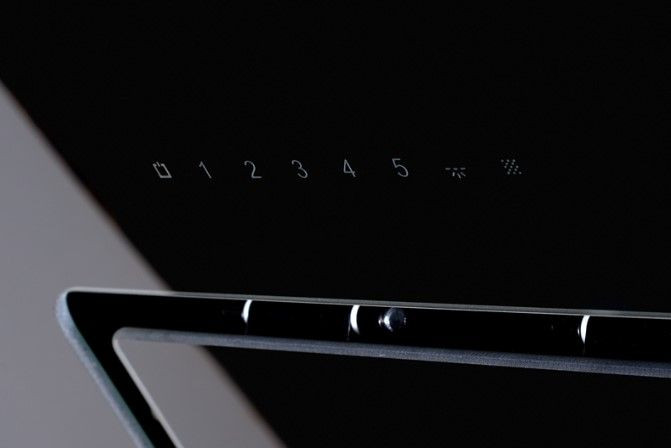 Управление реализовано электронно через сенсорную панель с фронтальным расположением элементов и таймером, есть индикация выбранной мощности, режима работы и индикатор загрязнения жирового фильтра, что упрощает эксплуатацию и обслуживание. Для удобства в комплекте поставляется пульт дистанционного управления, при этом жиропоглощающий элемент изготовлен из металла и пригоден для мытья в посудомоечной машине. Светодиодное освещение рабочей поверхности представлено двумя лампами по 1 Вт, которые дают ровный и экономичный поток света над плитой.